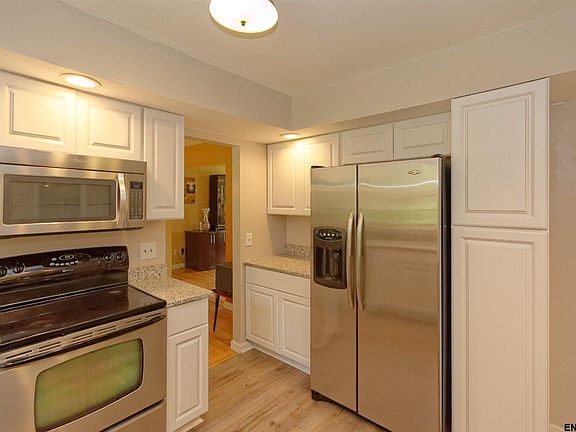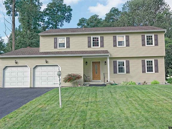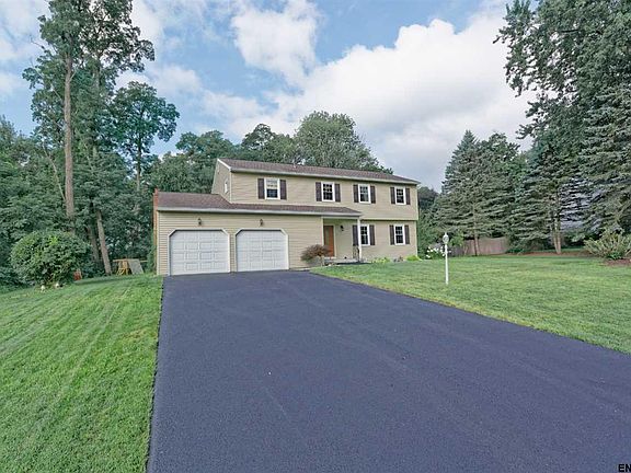 This Updated Colonial Sits in a Family Friendly Guilderland Neighborhood. The Redesigned Eat-In-Kitchen Impresses w Brand New Granite, Cabinets, SS Appliances & Flooring! Features Inc: 4 Bedrooms (Master W Full Bath & WI Closet), 3.5 Modernized Bathrooms, LR, DR, FR w Fireplace, Hardwoods (Most of Home), Finished Basement w Full Bath & Second Means of Legal Egress! Enjoy the Level, & Private Backyard From Your Deck. IG Sprinklers, 1st Floor Laundry, CAir, Replaced Windows, H2O Heater(3) Roof & Siding(6).