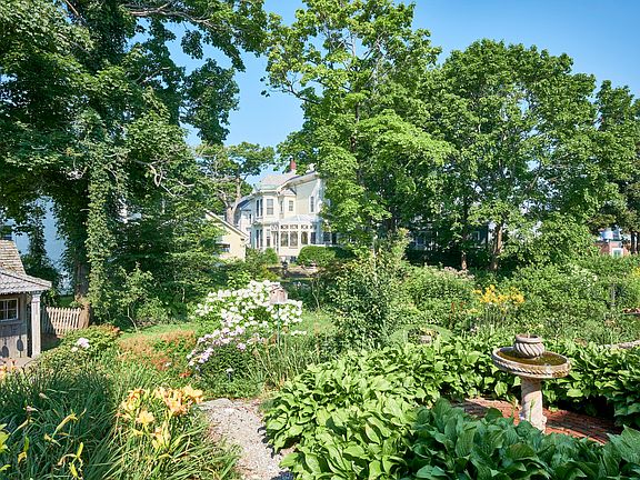 Live the sweet village life in the little port city of Rockland in this uber-charming 1850 colonial, adorned with professionally designed gardens, and located only two blocks from Main Street. The post office, library, a small food market, wine shop, island ferry terminal, museums, shops, restaurants, coffee spots and Rockland's dynamic waterfront are only a few steps away. After wandering downtown, allow the mature plantings at 34 High Street to draw you into this 2,256 sq. foot, 3-bedroom, 2.5-bathroom home. Relax by the living room gas fireplace or revive your spirit reading a book in sunroom bathed in the hues of westerly sunset light overlooking terraced backyard gardens. Welcome friends for a rousing dinner in the formal dining room or take the party to the back deck with the hot tub. Lazily stroll down the garden paths to the potting shed and lower lawn area. The primary bedroom suite offers a large walk-in closet and dressing room. The attached 1-car garage leads to an inspiring, crafty makers space with plenty of storage above accessed by stairs. The newer furnace and updated electrical services further support your sense of ease in this lovely abode.