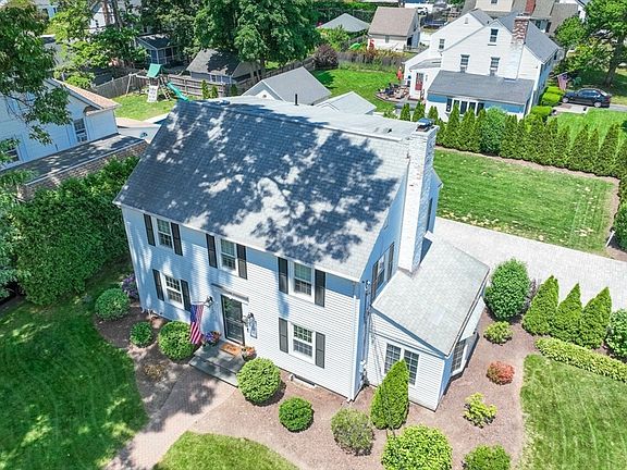 Charming Colonial with 10 rms, 5 bedrooms, 2.5 baths is now available. This center hall style home has a large LR with a wd burning FP, crown molding & hardwd flrs which leads to a sunny home office/den. To the left of the foyer is a gracious DR offering a glass-door enclosed corner cabinet, hardwd flr and chandelier. The kitchen is decorated w/white cabinets, granite counter's w/a breakfast bar that opens to the huge FR! The design of this FR has high ceilings, gas fireplace, custom built window seats & cabinets for storage, beautiful flr to ceiling windows for natural sunlight and hardwood flrs including a french style dr to the outside. The efficient heating system combines FWA gas heat & central AC on 1st flr only & steam system in use on the 2nd level. Two high efficient window units on 2nd flr & left for buyers. There are 2 updated full bathrms, one on each level. A large shed on side yd is great for storing lawn equipment connected to an extensive paver driveway and patio.