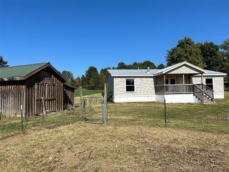 This is a three bedroom, two full bath mobile home on an acre lot. The living room has a wood burning stone fireplace. The kitchen has a nice size dining area. The master bedroom offers his and her closet and full bath with a garden tub and separate shower. The additional lot is included with the property and could be built on or just kept private. There are also two large sheds that offers ample storage. There are many possibilities with this property.