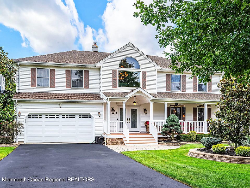 This is a COMING SOON!  Showings begin on Saturday 7/22/23. IMPRESSIVE & IMMACULATELY maintained are a few of the many adjectives used to describe this 3,400 sq ft  home located in one of Manalapan's most desirable neighborhoods. Pull up to the beautifully landscaped natural stone waterfall which undoubtedly  enhances the curb appeal of this property. The paver stone walkway leading to the furnished Victorian Trex porch with PVC railings and fencing, sits under two outdoor ceiling fans which creates a relaxing lounge area.  The etched glass double entry doors with Baldwin locks add a touch of sophistication. Inside -  the hardwood flooring and crown moldings throughout exude elegance. Celebrate the holidays in this open floor plan oversized kitchen with its granite countertops and islan IMPRESSIVE & IMMACULATELY maintained are a few of the many adjectives used to describe this 3,400 sq ft  home located in one of Manalapan's most desirable neighborhoods. Pull up to the beautifully landscaped natural stone waterfall which undoubtedly  enhances the curb appeal of this property. The paver stone walkway leading to the furnished Victorian Trex porch with PVC railings and fencing, sits under two outdoor ceiling fans which creates a relaxing lounge area.  The etched glass double entry doors with Baldwin locks add a touch of sophistication. Inside -  the hardwood flooring and crown moldings throughout exude elegance. Celebrate the holidays in this open floor plan oversized kitchen with its granite countertops and island which offers ample space to cook for both intimate gatherings as well as larger family parties. The abundance of lighted wood cabinet space is a great convenience. The stainless steel appliances, including a Viking stove with a hood, are high quality additions. There are two family rooms that feature one brick/stone gas fireplace, providing warmth and a cozy atmosphere. The new Renewal By Andersen windows ensure both style and energy efficiency. The large new sliding door off the kitchen leads to a well-lit, oversized private yard. Here, you'll find another stunning Trex deck with an outdoor grill. The motorized retractable awning adds versatility to the outdoor space. Another paver stone walkway leads to a screened-in, furnished gazebo with a TV-another perfect spot for relaxation. The saltwater pool, heated and equipped with a safety loop lock cover, along with the hot tub, offers luxurious outdoor amenities for fun and entertaining! Heading upstairs, the wrought iron and oak banisters guide you to the second floor landing, where a huge picture window and gorgeous Alabaster Chandelier greets you. The spacious master bedroom suite, with its newly remodeled master bath, features an oversized shower, top of the line frameless shower doors, Moen fixtures and a soaking tub with a double vanity made from Carrera Stone. In total, there are four bedrooms and 2.5 baths. The half finished basement and abundant storage space throughout the house are practical and valuable additions. In addition to all that , the owner recently replaced the 2 car garage, with the most up to date technologically equipped door. Overall, this home combines luxurious features, thoughtful design, and spaciousness, making it truly beautiful and a MUST SEE!