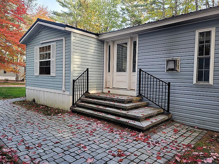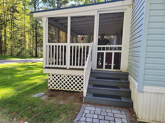Really spectacular home with amazing custom built 16' x 24' addition on a very private 2/3 acre lot. This 1300 sf singlewide home has every upgrade imaginable. Includes, heated & air conditioned 2 car garage, shed, 2 porches, 4 heat pumps, gas fireplace, vinyl plank flooring, Corian countertops, pantry, built in ironing board, standby generator, stone patio, cobblestone walkways, newly paved driveway, matching metal roofs, matching vinyl siding and so much more. A truly exceptional home in a beautiful, one of a kind senior mobile home park with low lot rent. Must be seen. More info at www.pleasantacresestates.com. Priced at $154,900. Call Loretta at 207-754-6888