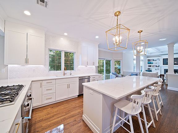 This better-than-new cedar shake colonial features a main floor open floor plan. Brand new sunlit chef's kitchen with top of the line Viking appliances is open to the dining room and flows into a spacious family room with a fireplace, custom built-ins and coffered ceilings. Sunny home office with French doors and grass cloth wallpaper. Second floor master bedroom has tray ceilings, bath and an oversized closet, together with three other bedrooms. Terrific fully-finished basement with a full bath, media room, home gym, rec room, bonus room/bedroom, built-ins and hardwood floors. Private backyard is perfect for summer barbecues & outside living. Great location in desirable River Oaks neighborhood; a short walk to schools and town. 10 minutes to the beach and an easy ride to the NYC high-speed ferry. Full-house Generac natural gas generator. Qualified buyers only. Will work with buyer's agents.