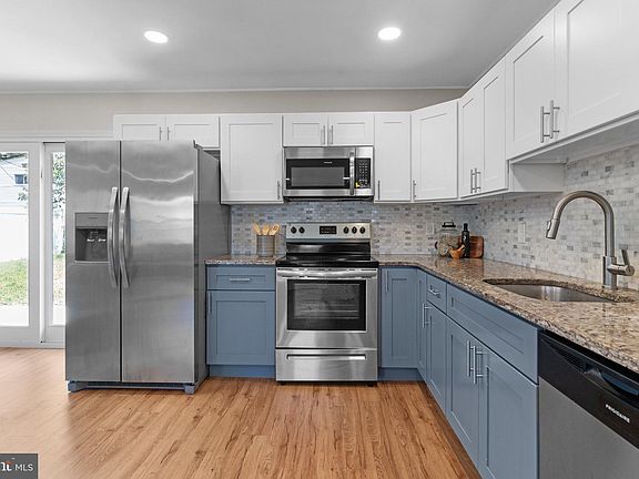 Welcome to this beautifully remodeled four-bedroom, two-bathroom home! The first floor impresses with a spacious eat-in kitchen featuring white and grey cabinets, granite countertops, a stylish subway-tiled backsplash, and stainless steel appliances. A sliding door opens to a large, beautiful backyard, filling the space with natural light and fresh air. The great room, along with two generous bedrooms and a full bathroom, offers ample living space. Upstairs, you'll find two more well-sized bedrooms and another full bathroom, ensuring extra comfort. Spotlights and laminate flooring throughout add a touch of elegance, while a new HVAC system, water heater, and windows ensure energy efficiency. A large laundry room and storage area, plus a one-car garage, complete this lovely home. Ideally located near playgrounds, public transportation, major roads, shopping, and dining, this home offers unbeatable convenience and style.