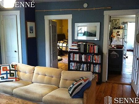 Lovely 1 bedroom + study in Riverside. Large eat-in kitchen with pantry. Pine floors. Enclosed back porch. Gorgeous shared back yard and patio. Electric baseboard heating in apartment except kitchen which uses gas. Pets ok up to 40lbs. Laundry in unit.