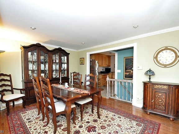Beautiful home situated on quiet street meticulously updated and maintained with attention to detail. Spacious living room with picture window, updated floor, recessed lights and crown moldings.Spacious eat-kitchen w/breakfast bar, oak cabinets, ceramic tile floor & recessed lights. Kitchen is open to large sunken family room that features newer laminate floor, ceiling fan and French door to outdoor consisting spacious patio, deck & above ground swimming pool. Newer front door, all trim and doors replaced, all Andersen windows & CAC. Full finished basement with recreation room, office, full bath and finished laundry room. One car garage w/newer garage door, just freshly painted. Washer, dryer & refrigerator included. GREAT LOCATION!!! Just few minutes from NYC train, major highways & shopping.