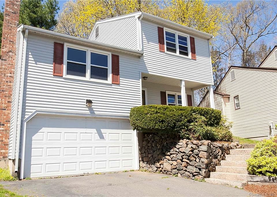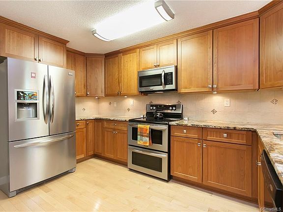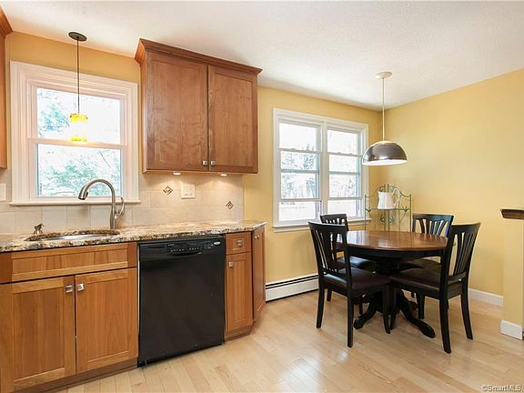 Welcome to this spacious and sun-filled 2 bedroom, 2 full bath home in the desirable Brooks Edge community of Newington. A stone wall, lovely landscaping, and a cozy porch invite you inside where you'll find a large front-to-back living room that can also be used as a combo living/dining area. Step through the sliding glass doors onto the wood deck with privacy wall where you can entertain, dine al fresco, or simply enjoy a quiet moment with your favorite book. Head back inside to the remodeled eat-in kitchen featuring cherry cabinets, granite countertops, tile backsplash, under-cabinet lighting, and stainless steel appliances. Off the kitchen, you'll find a den with custom built-ins and a wood-burning fireplace perfect for those cooler nights. A full bathroom with laundry completes the main living area. The upstairs features a light and bright master bedroom with double closets, a second bedroom with lots of closet space, and another full bathroom. There is plenty of storage space in the basement plus a semi-finished area that could serve as a rec room, hobby room, office, and more. The attached extra large garage is perfect for storing workbenches or lawn equipment. Located at the end of a cul-de-sac in a tucked-away community yet close to highways, shopping, dining, and just minutes to area parks, fitness centers, the town pool, and so much more. (This is a PUD. HOA fee of $500 paid annually for road maintenance and snow removal. Also listed as MLS# 170187107).