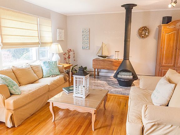 Charming 2 bedroom open floor plan ranch with wood stove in Bellport Village, short walk to downtown restaurants, shops, and the waterfront/ferry to Ho Hum Beach! Private yard with deck and plenty of room for a pool with front yard cushioned by mature privacy hedges. Full basement. Make this your perfect low maintenance weekend getaway!