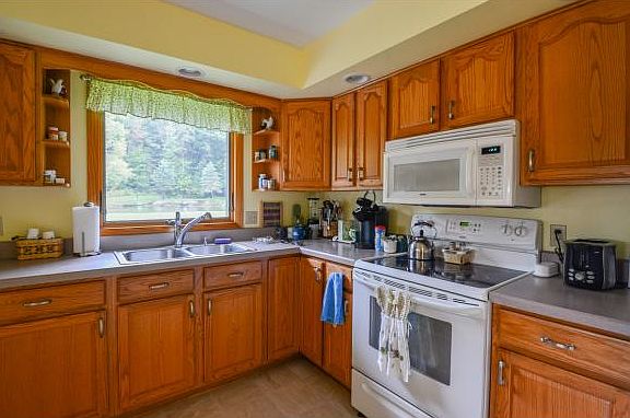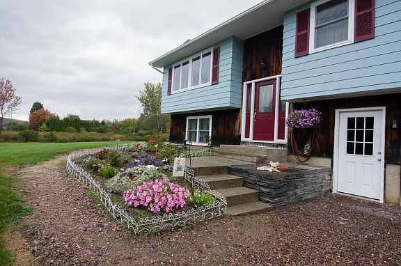 Privacy, country living, and more can be yours, all within an established neighborhood.. This home sits on 6.5 Acres off Kriste Lane with an owned 60' access road. Subdivision is possible for new owner.The house enjoys an in-law apartment, oversized garage, newer kitchen,vinyl windows, exterior and interior doors, laminate and hardwood flooring: all set to move-in!A picturesque pond is out back with lights surrounding for night-time enjoyment. An in-ground pool has a three-year old liner and tarp and will be ready next Spring. There are trails and plenty of yard space for outdoor enjoyment.