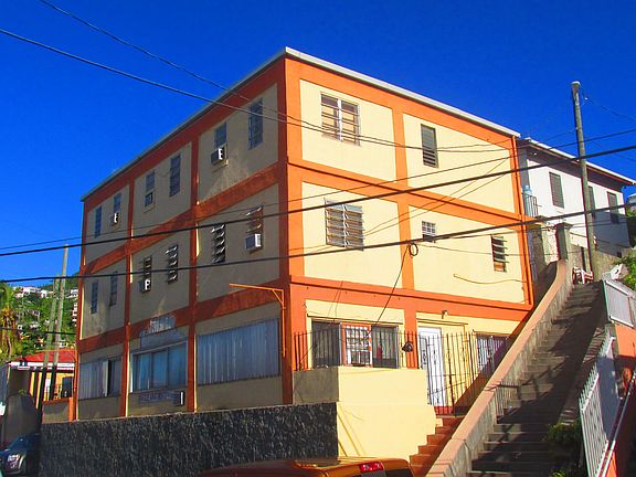 SOLID INCOME PRODUCING! 10 apartments in this Masonry 3 story building conveniently located downtown. $80,000+- yearly income. 10 apts. 5 l Br 1 Bath,- 1 2 BR. 1 Bath & 3 Studios. &1- 3 BR/1Bath Electric- WAPA - 3 apts separately metered- 7 by landlord who gives the bill to tenants. City Water, separately metered.'' Sq. footage in documents with rent roll''. Walking distance to shops, groceries, activities, etc. 24 hour notice to show, The owner is working on the building and it does need extra maintenance.