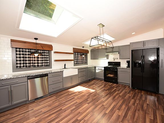 "Lovely" is the first word that comes to mind as you arrive at this beautifully updated 3-bedroom mobile home, where attention to detail is evident throughout. It features a spacious living room with built-ins, a separate family room, trendy lighting, and two fireplaces, creating a warm and inviting atmosphere. The sunny eat-in kitchen boasts granite countertops, ample cabinetry, a farmer's sink, dishwasher, and even a pot filler faucet over the 6 burner gas range; all perfect for everyday meals and entertaining. The primary bedroom, ensuite bathroom and a stylish sliding barn door for added charm and privacy. Additional features include central air, on-demand hot water, a full-size washer and dryer, and abundant storage space. A standout feature is the expansive 24 x 24 studio/workshop, which could be converted back to a garage if needed, offering flexibility for your needs. Black Bear Village Coop offers the best of community living with access to town water/sewer, a fantastic sandy beach on the Saco River, and close proximity to all the amenities of North Conway. This property is not to be missed!