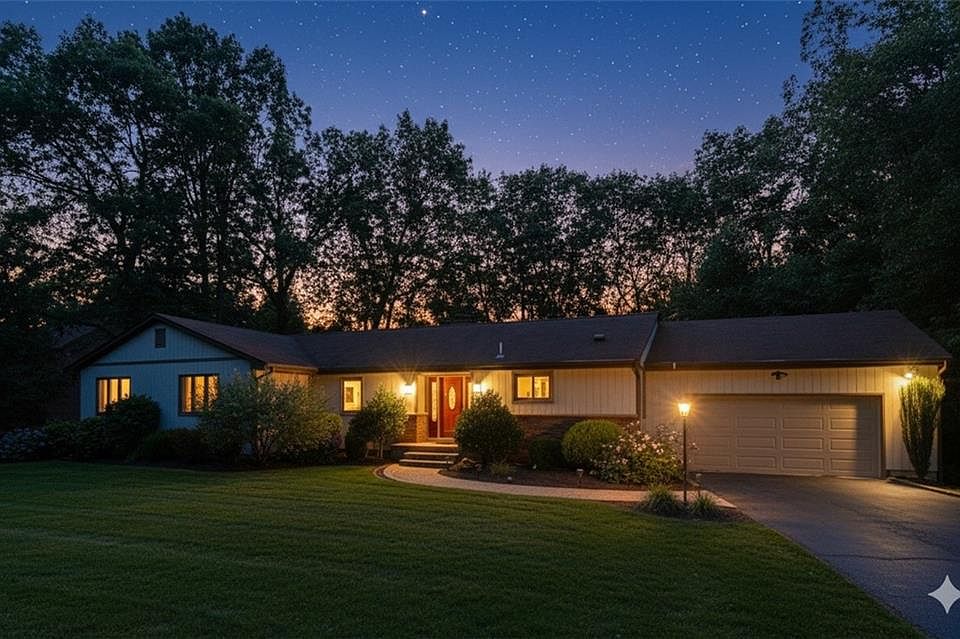 Beautifully updated 3-bedroom, 2-bath ranch in a highly sought-after subdivision with freshly painted interiors and central A/C. The welcoming front entry opens to a bright living room featuring built-in woodwork and gleaming hardwood floors. Off the formal dining room, an expansive, freshly painted deck is perfect for grilling, hosting gatherings, or enjoying morning coffee while overlooking the serene backyard. The updated kitchen boasts stainless steel appliances, resurfaced cabinetry, modern hardware, and ample counter space for meal prep. A spacious family room showcases soaring cathedral ceilings, recessed lighting, and large picture windows that bathe the room in natural light, with direct access to a second deck for seamless indoor-outdoor living. The home is surrounded by a beautifully landscaped yard with mature trees providing shade, privacy, and year-round beauty. The large walk-out basement features a dedicated laundry room, a generous workshop area, and a separate storage room—ideal for organization and hobbies. An attached garage adds convenience, and the property’s thoughtful updates inside and out make it truly move-in ready.