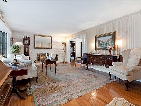 Beautiful ALL BRICK home on a gorgeous lot! Newer HARDWOOD floors in LR, DR, Kitchen and hallway. The large LR features a bay window and stone wall with 2 sided fireplace. Formal DR has crown molding and crystal chandelier. Fully equipped eat-in kitchen includes newer JennAir cooktop, Kitchen Aid dw, subway tile backsplash, pantry with pull out shelving. Spacious FR features FP and built-in shelving. FIRST FLOOR MASTER has 2 closets (1 walk-in) and bathroom with tiled shower. 2 additional bedrooms and hall bath with marble floor complete the 1st floor. 2nd floor master suite features large bedroom with bay window, 2 closets (1 walk-in) bathroom with marble floor and sitting rm which could be 5th bedroom. Huge, fin basement with kitchen, half bath and abundant storage. Extensive landscaping and mature trees offer the perfect setting for the 21x27 covered patio and inground pool. NEWER ROOF (2017). Most of 1st floor freshly painted neutral color.