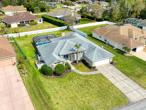 MOVE-IN READY BEAUTIFULLY REMODELED POOL HOME IN HUNTERS RIDGE! This home is sure to check all of the boxes with a very inviting open floor plan, gorgeous central kitchen, high ceilings, five full bedrooms, screened pool, and tons of backyard space. The split floor plan includes a spacious primary suite with double walk-in closets, large en suite bathroom complete with garden tub and separate shower, and French doors leading to the lanai, pool, and spa. Four additional bedrooms adorn the south wing of the home including a convenient back bedroom suite with a door to the backyard that could easily be used an in-law suite. The central entertaining spaces seamlessly connect to provide incredible flow between kitchen, living, dining, and family rooms that all have great views of the pool and backyard. The kitchen is a showpiece with custom stone counters, new cabinetry, new lighting, and new stainless appliances. All living areas have new luxury vinyl plank flooring, new designer lighting, and tons of natural light. The living room fireplace is yet another focal point that makes this home feel inviting and comfortable for all occasions. The outdoor spaces are tremendous including a huge covered patio space with plenty of room for outdoor furniture to lounge by the pool. This pool has just been completely redone including new pool surface that is still under warranty. Beyond the screened pool area, a large fenced backyard provides ample space for all of the activities you could dream of. Located in the highly sought-after neighborhood of Hunters Ridge in Ormond Beach with a beautiful central lake, community pool, tennis courts, clubhouse, playground, and quiet streets with little traffic.