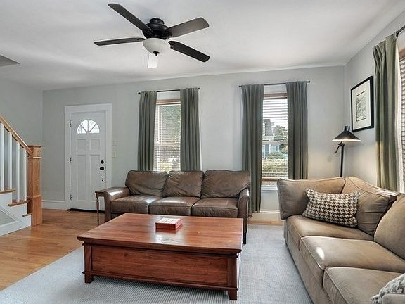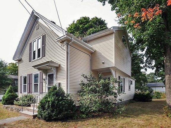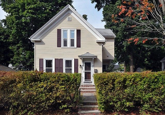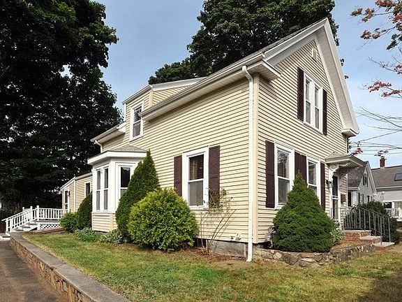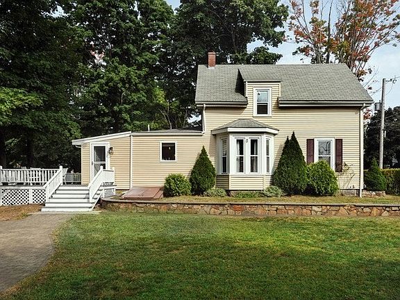 Truly Charming Turn Key Home! This endearing house has all the feels of a delightful yesteryear and still offers the modern updates we all love. It features a large open floor plan kitchen with center island that includes high-top seating alongside a light and bright sunroom/mudroom area, vinyl siding, circuit breakers and more. The spacious 2 full baths have been beautifully updated with the 2nd floor bath hosting a stunning custom window, skylight and convenient laundry unit. So many lovely features add character to this home, including gleaming hardwoods, solid doors, authentic custom mouldings, a stunning refurbished staircase, well-placed recessed lighting, and deep closets. Entertaining will be a pleasure with the large open deck area and patio, which leads to a classic stone wall with a nice private side yard. All this, plus lots of off street parking, plenty of storage in the spacious 2 car garage and easy commute to Boston make this a real must see!