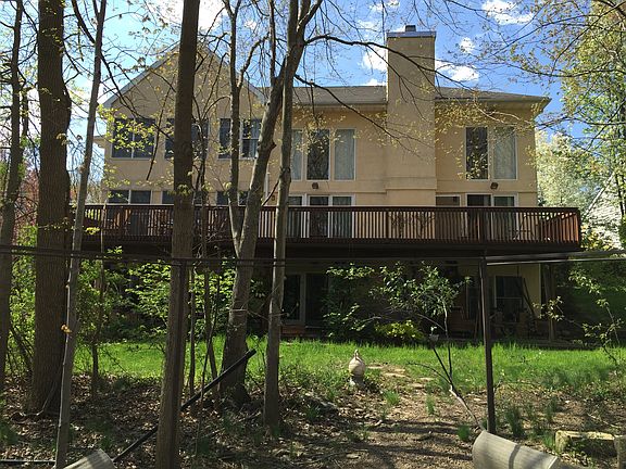 Impressive entry soaring ceilings Flr to ceiling wdws, opn flr pln. Huge kitc, off, wooded lot. Fin walk out bsmt sauna bar brm bth.Patio deck. Prtn mail addr.