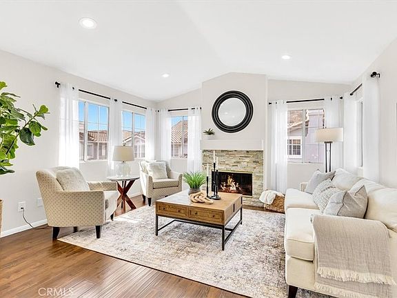 Located in the exclusive gated Mirasol community of Mission Viejo, this exquisite townhome offers a rare combination of privacy and style. Recently, upgraded and freshly painted, this home offers a highly sought-after floor plan that emphasizes open, light-filled spaces. The inviting living room features a cozy fireplace, while the gourmet kitchen boasts granite countertops, stainless steel appliances, and seamlessly connects to a dining area. Step out onto the private patio, perfect for outdoor entertaining or simply enjoying the Southern California weather. The primary suite is a peaceful retreat, complete with a spacious en-suite bathroom offering dual sinks, a soaking tub and shower. The home's desirable carriage-style layout provides single-level living feel, with all living spaces on one floor. High ceilings and newer flooring enhance the bright, airy ambiance throughout. The primary bedroom includes a large walk-in closet, and the secondary bedroom offers generous space. Off the hallway, enjoy a serene balcony, ideal for al fresco dining or entertainment. Additional highlights include an attached two-car garage and ample guest parking. As a resident, you'll have access to the amenities at Lake Mission Viejo, including its beach, swimming areas, and popular summer concerts. Conveniently located just minutes from major freeways, this home is perfect for both relaxation and easy commute.