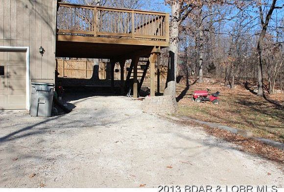 Clean and tidy home on an enormous lot with seasonal lake views. Home includes 3 levels and 2 living rooms. A built in fish tank in the lower level that can be used for game room, kids play room or office. Middle level has one bedroom and 1/2 bath with laundry plus kitchen, dining and living area that walks out onto a large nice deck overlooking the flat yard and sand pit for the kids to play. Top floor has 2 more bedrooms and full bath. Yard is partially fenced. Home has a 1 car attached garage and plenty of room for you to build another if you like. Access the lake down the road at Village Marina. Wonderful location, close to Osage Beach and located in School of the Osage district. This home is a bargain and ready for you today!