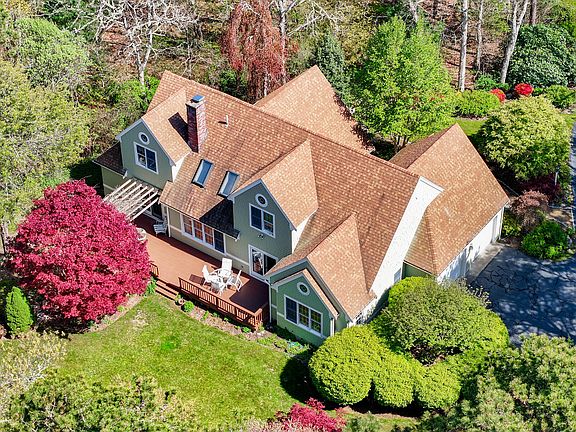 Ballymeade Estates, a private gated community with two championship golf courses, is where you will find this warm and inviting 3 BR, 2.5 BA Contemporary Style home located at the end of a private cul-de-sac. The home boasts an open floor plan where attention to detail is seen throughout. The first floor includes a bright & open eat-in kitchen with a full range of appliances, a living room with a vaulted ceiling and gas fireplace, dining room, and family room also with a vaulted ceiling. Also located on the 1st floor is the large Primary bedroom suite with private bath. The second floor offers 2 additional spacious bedrooms with a large full bath. The walk-out lower level, with an estimated 500 sq ft of finished space, offers additional room for all the summer guests. Come home from a day at the beach or golfing, park in your 2-car garage and sit on your roomy deck and enjoy your private & tranquil beautifully manicured yard. Don't miss this opportunity to live in Beautiful Ballymeade Estates!!
