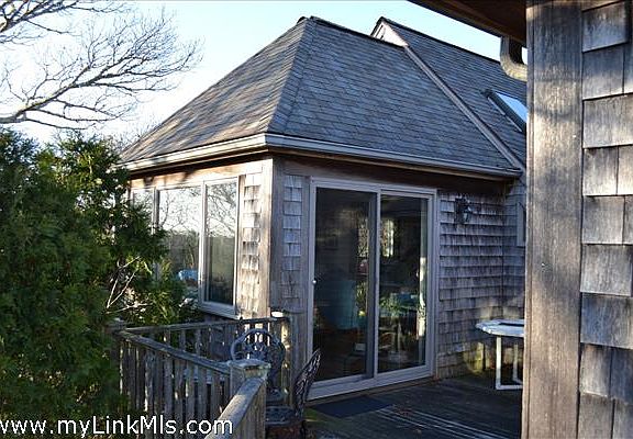 Wonderfully private West Tisbury location right off Lambert's Cove Road with distant water view. This reverse style home awaits your personal touches. Enjoy all West Tisbury has to offer. Home features a comfortable living room with propane fireplace and cathedral ceiling, a spacious kitchen with large island, and a delightful garden room off the kitchen. There is also a full bath and cozy loft. On the ground level, you will find the two bedrooms and a two car garage. Six bedroom septic system according to the Board of Health records. Additional amenities include a screened porch and outdoor shower. Detached shed for storage. Better water views could be possible.