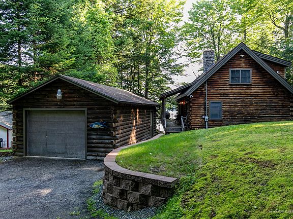 Tired of city living? Picture yourself here, relaxing on the wrap-around deck, listening to the loons, watching the eagles, with a flat front yard leading to the water right from the daylight basement. You can entertain your friends and family in this year-round, open-concept, 3-bedroom, 2-bath log home which sits among the trees. Swim and boat from your own private waterfront with dock. Put all the toys in the 16' x 28' garage or in the convenient shed. Finished space in the walkout basement offers more room for guests. Round pond is a very quiet waterfront retreat that one must see. You will not be disappointed. This home is being conveyed fully furnished, from the dock to the dishes.