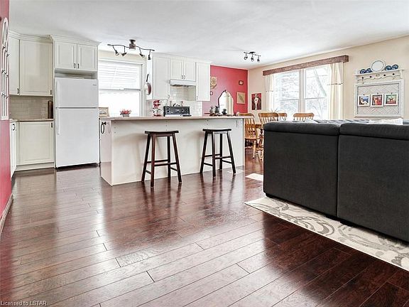 Spacious and bright family home with a renovated open concept white kitchen with large centre island and great room with beautiful laminate floors! This wonderful home is located on a quiet Westmount court and features a large fenced pie-shaped lot with patio! Fantastic for comfortable family living! 3 + 2 Bedrooms and 2 full bathrooms. Generous foyer plus a rear mudroom (with storage underneath) off the oversized 22'3 x 20 garage. Large windows through the spacious lower level. Spacious family room with fireplace (though not used by current owners) New electrical breaker panel (2016) with associated ESA certificate. Some replacement windows. Energy efficient forced air gas furnace (2013) and central air. Currently the exercise room is being used as a playroom. Built-in shelving in one of the lower bedrooms. Just a few steps to Woodcrest Community Pool, many parks, woods, playgrounds, schools, and the other many Westmount amenities! You will love the warm and friendly feel of this home and the neighbourhood! Showings by appointment only - call or email today! Room measurements approximate and may be more or less jogs.