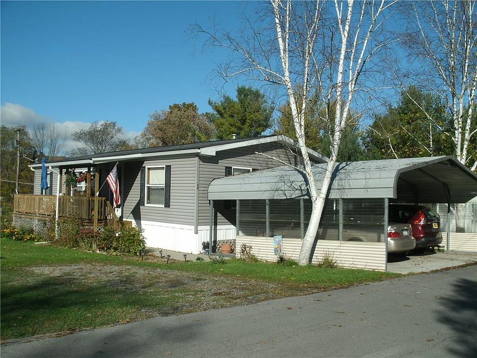 Affordable living!! Well maintained Sunny and Spacious!! Welcoming porch with new gutters and deck into your 2010 double wide mobile home set up in quiet park.Huge,new and very well built carport on concrete pad,holds 2 large vehicles plus extra parking outside.. Home has 3 bedrooms,1 with beautiful french doors set up now as a library/den.Eat in kitchen with new gas range,refrigerator ,garbage disposal & new kitchen sink. ! Laundry room just off the kitchen.Lovely master bedroom with spacious master bath.Separate guest bathroom just off the living room . Wonderful yard with flowers, storage shed & picnic area. Home is heated with natural gas and has central air. **Park rent is $400.per month and includes garbage pickup. Home Owners are responsible for lawn and driveway care.Call today !!!