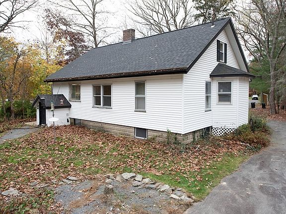 This cape is located on just over 3 acres with beautiful flowering trees and a spacious yard to make your own. 3 bed/2 bath that includes new roof and refinished hardwood floors in 2020 and new water boiler in 2022. First floor includes 2 bedrooms, full bath, livingroom, dining room and kitchen, Second floor includes additional bedroom and full bath. Features personal greenhouse off of kitchen to keep your plants all year round. Land includes two garages and shed for plenty of storage. Plenty of parking with extended horseshoe driveway. Property is zoned for residential in the front while also zoned for industrial in the rear. Property is being sold as-is, septic won't pass Title V and is buyers responsibility.