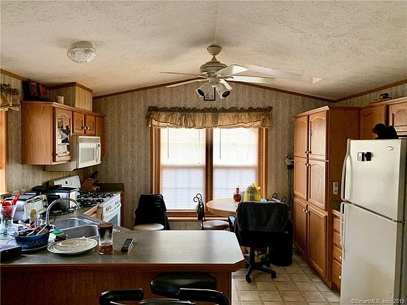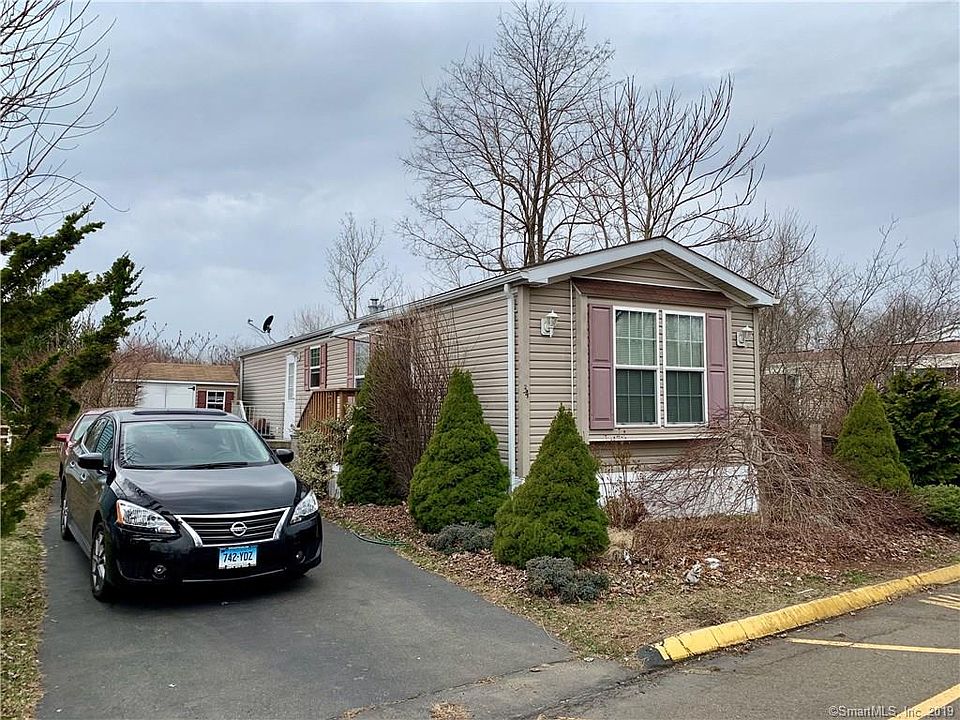 **WELCOME TO RYDER WOODS MOBILE HOME PARK** Move right into this 2 bedroom mobile home with open floor plan. Ideal 1 level living in a private community. Enjoy the spacious kitchen with oak cabinets & breakfast bar, in unit laundry, vaulted ceilings, central air, exterior shed and privacy with woods on 3 sides. Driveway has parking for 2 cars. Great location convenient to everything. Buyers must be approved by association.