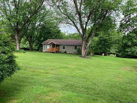 Spacious and pleasant home located on a quiet no outlet lane, and perched in the middle of a leafy 3 acre property available for lease. A covered front porch leads into a nice sized living room with separate dining room, and nicely featured kitchen with pass through window. Down the hall are 3 good sized bedrooms and 2 bathrooms. There is delightful covered deck off the side of the house, and large open deck off the back, with level, expansive backyard beyond. Automatic standy generator. Basement has roughly 600 sf of finished heated & dry storage space with full bath. There is a detached 2 car garage, which the owner wishes to retain use of, however it could be offered to a tenant, if needed. Please inquire. This is upstate living at its finest! Available November 15th. One year lease term, or longer, required. Tenant pays all utilities - electricity, propane fuel, Internet, snow plowing, and lawn care.