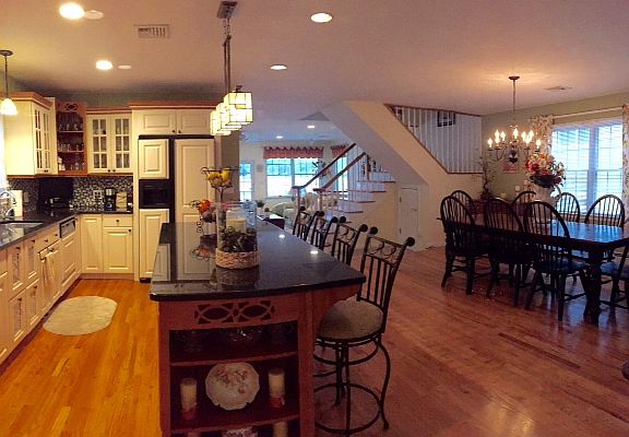 Stylish lakefront offers 3 living levels. Open floor plan begins with a gourmet kitchen, granite counter tops, new stainless appliances. Spacious dining room open to living rm with views to fireplace. Living rm offers new stacked stone gas fireplace with barn beam mantel and raised hearth. Slider leads to upper deck with stairs to yard. 2nd floor boasts spacious master suite with sitting area, double closet and private full bath. Two additional bedrooms, full bath and washer/dryer. 1st & second floor offer new hardwood flooring and ceiling fans in each room. Lower level walk-out with second kitchen, full bath, washer/dryer and bonus rm for living or in-law suite as this space has a separate entry that leads out to the cover patio. New landscape includes path to lakeside firepit and dock. Plenty of room for parking and garage potential. Outdoor shed for additional storage. Walking distance to restaurants and hiking/biking trails. Ten mins to NJ transit to NYC. Updates since 2016 include: hardwood flooring, gas fireplace, stainless appliances, washer/dryer (1 yr). Central air. Exterior landscape retaining walls at entry, lakeside patio & firepit. Irrigation and plantings.