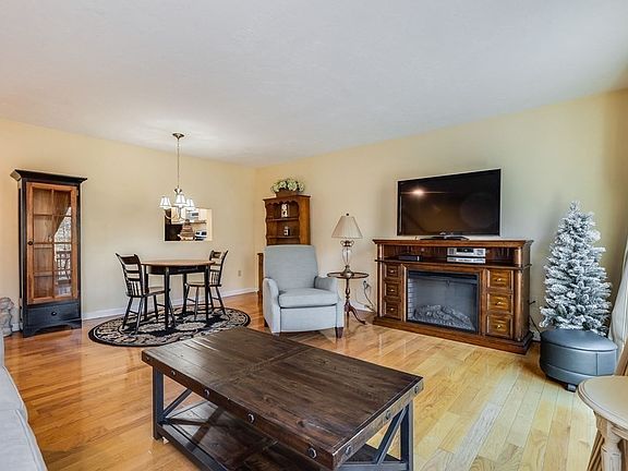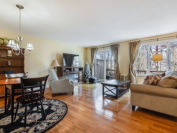Welcome to Josselyn Farms! Light streams into this welcoming townhouse that has been beautifully updated and maintained. Kitchen with granite, updated cabinetry, SS appliances, tile floor. Open concept living/dining room with gorgeous hardwood floors, slider leads to your expansive private deck. Large tiled foyer with cathedral ceiling, updated half bath complete the 1st floor. Brand new carpeting on the second floor. Master with double closets and bath, additional access to bath from hallway. Second bedroom with walk in closet, attic storage. Finished lower level with full walk out, sliders and recessed lighting, laundry and utility/storage room. Central air, new heating system, all appliances included. Located within steps of everything Pembroke center has to offer; shops, grocery, restaurants, library, annual community events, new community center in progress. Located at the end of the complex, a quiet private wooded location. Two deeded parking spots @ front door, low condo fee.