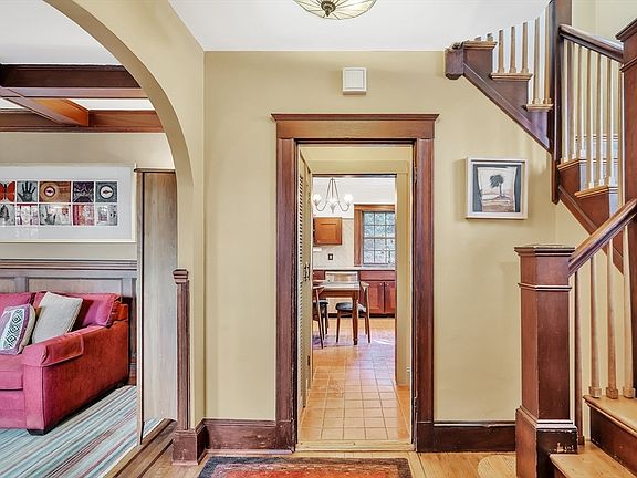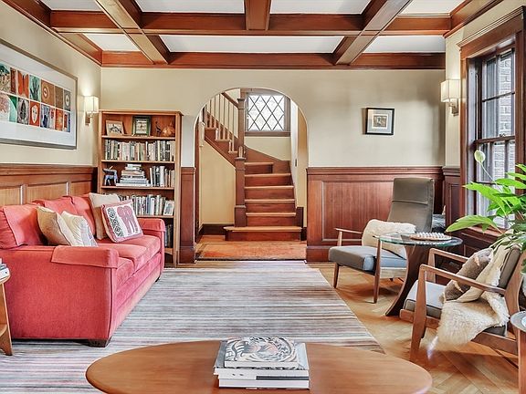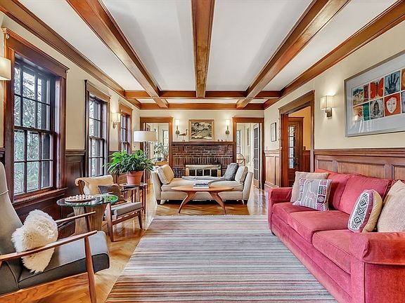 Gracious and impeccably maintained Tudor-style home in the coveted Moss Hill neighborhood. The main level features a spacious eat-in kitchen, fireplaced living room with coffered ceilings, formal dining room, a charming sunporch and convenient half bath. Three amply sized bedrooms & full bath upstairs equipped with central air conditioning for year-round comfort. The finished lower level offers flexibility as an informal living room, guest space, or au pair/in-law space with built-in shelving & one full bathroom. Both the main level & basement are equipped with mini-split systems for efficient cooling. Enjoy the inviting terraced yard with private patio & abundant greenery. Substantial systems update in 2020 including heating/cooling, electric, insulation, and water heater - full details attached in MLS. Includes 2 car garage with level II EV charging capacity. Located near vibrant shops and restaurants of downtown Jamaica Plain, and just moments from Jamaica Pond and Arnold Arboretum