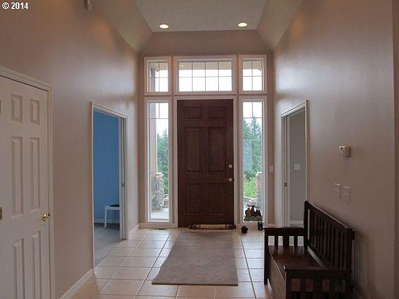 Nice home in secluded area. Property is on 10 acres of trees and view of Mt. Adams. Patio deck in rear of house. Laundry room. Two car garage attached to home. Handicap accessibility from garage. Nice walk-in closet in master and master bath has double vanity. Pictures are available at Zillow.com using this address - 34 McCarthy Rd. White Salmon. Renter pays utility costs (no water cost - on a well). No smoking allowed.