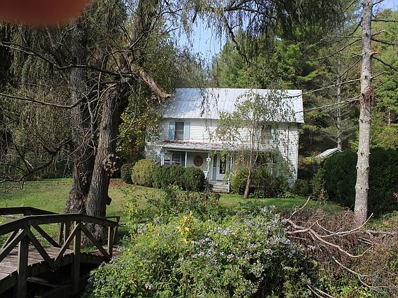 FARM HOUSE WITH A HISTORY. The two-story log house was built the year the Civil War ended, 1865. It later was expanded into this farm house with the outside of the logs covered. The loft was originally a closed room, but was converted to a loft so that from the living room the two stories of original rock fireplace & logs can be viewed. Presently the house has on the ground level a living room, bath, bedroom, great room with kitchen, dining, family room, and laundry/pantry. The second floor has a bedroom with bath and the loft which has been used as a bedroom with a closet. The covered front & back porch has room for swings and rocking chairs so you can enjoy the acre+ yard. The total acreage is 5.78 acres which includes a garden area and woods for wildlife to enjoy (turkey and deer). Property has a 1 car car-port, workshop, can house, and storage building. A stream runs along the property. No restrictions. HOME BEING SOLD AS IS.