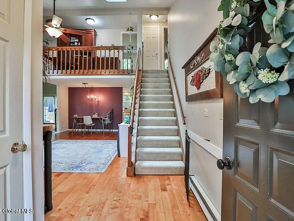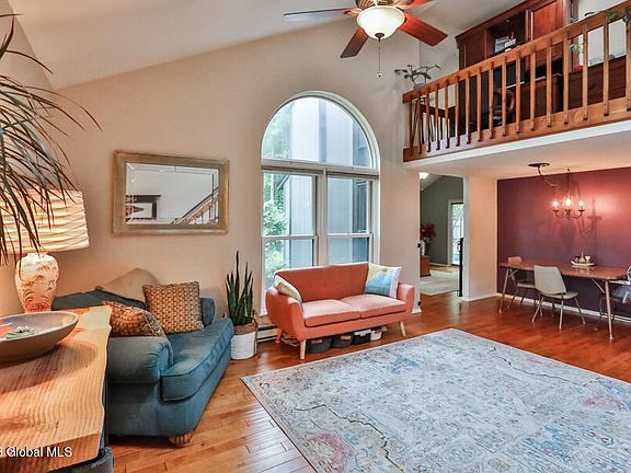 Welcome to Luther Forest! This lovely contemporary style home offers just over 1600 sq. ft. w/ 3 bedrooms & 2 full bathrooms. Elongated galley style kitchen has great working space w/ Quartz countertops & plenty of cabinetry. Primary bedroom w/ additional sitting area is located on the first floor & it has direct access to the first-floor full bath w/ laundry. Second floor includes two more bedrooms, a loft area & a completely updated full bath. Vaulted ceilings, hardwood flooring, ceramic tile, decorative fireplace & some newer windows. Newer Trex deck and fenced in backyard. Ductless air conditioning & heating in 3 rooms. Worried about storage, the attic, garage & shed have room for your extra belongings. Amazing location! Minutes away to Rt. 9 & I-87, GlobalFoundries & Saratoga Lake!