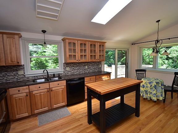 Nicely maintained home in fantastic neighborhood close to cul-de-sac. Bright and sunny living room with hardwood floors, cathedral ceilings and mini splits. The eat in kitchen has been updated with quartz counters and sliders leading to Trex deck and lovely screened in gazebo that overlooks private backyard with plantings and man made water fall. Three bedrooms and beautiful tiled full bathroom. The lower level is partially finished with many possibilities. Large, bathroom with double bowl vanity sink, tiled shower and granite counters. 1 car attached garage off of lower level and large, flat side yard.