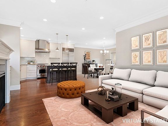 Gorgeous New Brookline townhouse just moments away from Larz Anderson Park! Offers beautiful finishes, upscale appointments, and wonderful views of the trees and greenery. The main level has a bright open floor plan, features a kitchen with high-end appliances, living/dining room w/direct access to both decks, beautiful electric fireplace. There are four bedrooms including a master bedroom suite with two closets and a luxurious bathroom with a steam shower, heated floor, and a marble-topped vanity with two sinks. Amenities offered are a lower level au pair/guest suite, an abundance of storage, a laundry room, a garage parking space with direct entry, and an outdoor parking space, interior & exterior sprinkler systems. Short distance to the city and all Chestnut Hill shops, restaurants. (THE STREET)