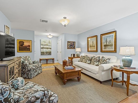 This stunning 2 bedroom, 2 bathroom condo is located in the desirable Meeting House Lane development. The unit boasts an open & airy layout w/ warm gleaming hardwood flooring throughout - perfect for comfortable living & entertaining. The spacious living/dining room features large windows that flood the space with natural light & offers tranquil views of the surrounding greenery. The well-appointed kitchen features new SS appliances, ample cabinet & counter space, making meal preparation a breeze. The guest bedroom is generously sized & offers ample closet space for storage - the owner's suite is complete w/ a full bath & walk-in closet. In addition to the many updated fixtures, the new owner will also appreciate the convenient in-unit laundry & deeded garage space. This freshly painted condo is situated in a well-maintained complex, complete w/ an exercise room, library, workshop & more. Don't miss your chance to make this amazing 2 bedroom, 2 bathroom condo your new home. 55+