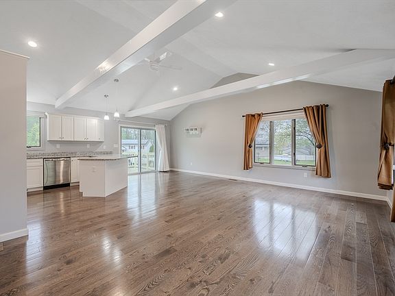 - Features: Cathedral Ceiling(s), Closet/Cabinets - Custom Built, Flooring - Hardwood, Flooring - Wood, Dining Area, Countertops - Stone/Granite/Solid, Countertops - Upgraded, Cabinets - Upgraded, Country Kitchen, Deck - Exterior, Open Floorplan, Recessed Lighting, Remodeled, Slider, Stainless Steel Appliances, Peninsula, Lighting - Overhead
