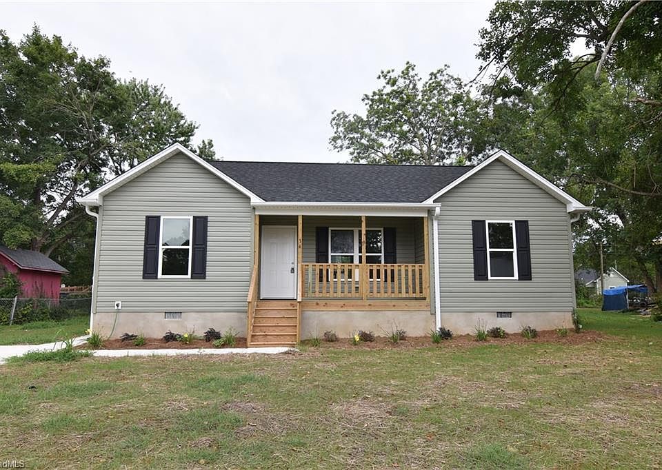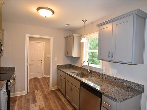 New construction with three bedrooms and two baths. Vaulted ceiling with ceiling fan in the living area. Shaker-style cabinets and granite countertops in the kitchen. Appliances include a refrigerator, dishwasher, range, and microwave. The primary bedroom has a ceiling fan, a double vanity, and a walk-in closet in the primary bath. Covered front porch and a 12' x 12' deck in the back. Concrete driveway and sidewalks.
