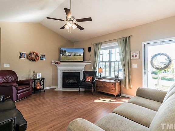 Bright and open one-level home with cathedral ceilings on a .46 acre cul-de-sac lot in a quiet neighborhood near major roadways. Features include huge kitchen with 42" cabinets and island, family room with gas fireplace, walk in closets, full front porch, new 2018 HVAC, roof replaced 2021, large fenced backyard, deck, and pre-wired storage building. Low-maintenance vinyl siding & new paint, too! This home has 4 bedrooms + bonus and laundry rooms and lives large. No HOA fees and short drive to good schools, shopping, & parks.