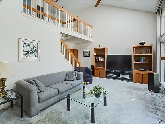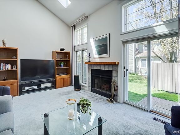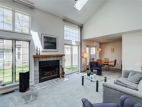 2 Bedroom, 2.5 Bath in Brittany Commons / Lac De Ville! Contemporary style townhome offers family room with wood-burning fireplace and impressive cathedral ceiling. The sunlight pours in through two skylights, the large full-length windows, and the sliding glass door to your backyard patio. Foyer, kitchen, dining area, ½ bath, and first-floor laundry complete the ground floor. Upstairs is a large primary BR with ample closet space and an ensuite bath, guest BR, a full family bath, and a large loft area perfect for a home office. Basement is clean and dry and offers plenty of storage space. 2-car attached garage. All carpets are freshly cleaned and all smoke and CO alarms are brand-new. Great location convenient to U of R, RIT, 12 Corners, Loehmann’s Plaza and lots of other retail options, and just minutes from downtown Rochester as well. Make this one your own! Reasonable HOA fees include Common Area Maintenance, Common Area Taxes And Insurance, Exterior Building Maintenance, Master Insurance, Reserve Fund, Snow Removal, Trash/Garbage Collection. Open house Saturday, May 4, from 11:00-2:00. Any offers due Wednesday, May 8, at 5:00 pm.