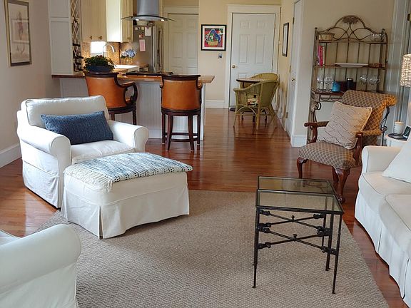 Seasonal Rental Available Oct/Nov 2025 to April/May 2026 $2600 This 2 bedroom 2 bath suite offers all modern conveniences in a beautifully updated historic building. Combining the historic Queen Anne building with the comfort of new windows, newer stainless steel appliances, and oak flooring in every room, the property has all modern conveniences with an extraordinary charm. Beautifully decorated and totally furnished with separate 2 bedroom suites with off street parking and only 1.78 miles from the base! Natural light and lots of windows, and a floor to ceiling double door overlooking a very spacious terrace that provides a view of the city and a peek of Narragansett Bay. The master bedroom suite has a queen size beautyrest black mattress with an adjustable base and remote, desk with printer, large 2 level closet, bathroom and a brand new Amazon Fire TV for streaming (provided). The kitchen appliances include LG -SS french door refrigerator and double freezer, gas oven and cooktop, LG dishwasher, white double farmers' sink and in-unit washer and electric dryer in the laundry room. Unit comes with your own parking space located adjacent to the house. Tenant pays utilities which include very efficient gas heat, electricity and water. Wifi included in the rent. A small dog is allowed on a case by case basis. No cats please. Located on the third floor of this large multi-family home, the wide open stairways and second egress allow for easy access. Enter either from the Mt.Vernon main entry hall or from the side yard up the rear staircase. Both are wide and easy to navigate. Landlord pays for internet service. Tenant pays for very reasonable gas heat, electricity, and water.