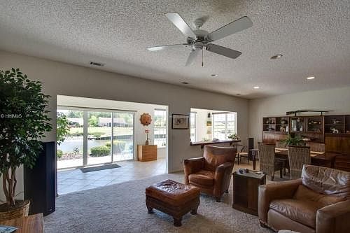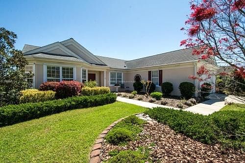 One of the most beautiful views in all of Sun City!!! Lagoon, Golf, Babbling Brook, Fountains, and Waterfall. There is no other property with the waterfall behind and a panoramic view of the entire side of a golf hole, where you can watch the T shot, approach shot and putting on the green. This timeless Lilac model offers new LVP flooring, Carolina room, spacious eat-in kitchen with Granite countertops, Stainless Steel appliances, double ovens, gas cooktop. 2 bedrooms PLUS den or office. Large Master Suite w/ 2 huge walk in closets. Newer HVAC. This well-maintained home is a must-see!!!