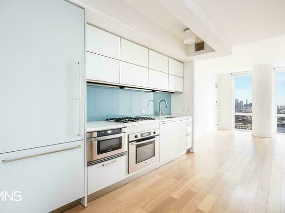 This gorgeous generously sized 500sqft alcove-studio home with northern exposure, features floor-to-ceiling windows, ample closet space, in unit washer/dryer, stainless steel appliances, white quartz countertop and more. The alcove configuration easily allows for living room separation with a temporary wall creating a bedroom enclosure, as currently shown (can be removed upon request). As the most sought-after address along the Williamsburg waterfront, the EDGE boasts an expansive amenity package which includes a 24hr concierge, indoor swimming pool, sauna, steam room, indoor basketball court, state-of-the-art fitness center, resident lounge with fireplace, billiards and game rooms, virtual golf simulator, children's playroom and movie screening rooms. In addition, the East River Ferry is right at your doorstep and the Bedford Avenue L-train is a short walk away. Furthermore, The EDGE benefits from the 421-a Tax Abatement through 2036. Schedule an in person showing today!