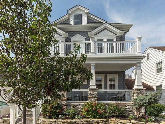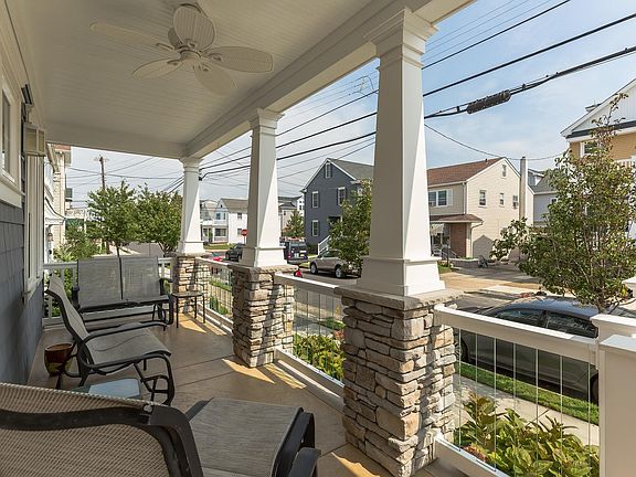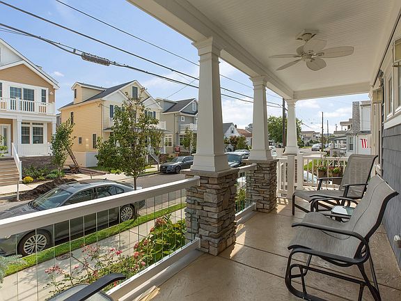 This is a classic Margate beauty! Built in 2012 by famed local Architect and Builder Robert Kiejdan, who is known for the highest quality builds, this home is sure to please. This custom 5-bedroom, 3.5-bathroom home exudes quality and charm throughout. Located just 2.5 blocks from the beach in the coveted "ABC" streets of Margate, this property boasts a prime location. Upon entering the first floor, you will be greeted by an open layout and stunning hardwood floors. The living room is bright and spacious with an inviting gas log fireplace. Adjacent to the living area is a generously sized dining area featuring custom light fixtures. The chef's kitchen is a dream, complete with a center island, granite countertops, custom cabinetry, and a beautiful tile backsplash. The double pantry and large laundry room offer additional convenience, while a half bath off the kitchen completes this floor. The second floor is comprised of two sizable guest bedrooms that share a lovely full bath, as well as a primary suite featuring a walk-in closet, beautifully appointed full bath, and private deck. The third floor offers two additional large bedrooms and a stunning full bath. The exterior of this home is as inviting as its interior, with tasteful landscaping and a private fenced yard that surrounds the lovely deck wrapping around the back of the house. Additional features include a storage shed, outdoor shower, and a driveway for 2 cars. Whether you are looking for a year-round residence or a stunning summer getaway, this home is a must-see.