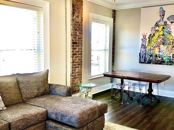 In the heart of downtown historic Wilmington, beautifully furnished 2 bedroom 2 bath condo above popular eatery. Great location and proximity to restaurants, shopping, River walk and theatre. Open kitchen into living space, washer dryer all appliances included. Large bedrooms and closet space. Master bathroom has dual vanity plus wall in shower as well as garden tub. All linens and kitchenware included. Owner pays water and one parking pass.