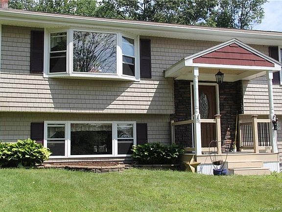 Privately situated raised ranch on dead end street features new windows, vinyl siding and remodeled kitchen and baths with granite counters. Hardwood floors throughout main level. No high heating bills here- supplement with pellet and/or wood stove inserts in fireplaces. Rear yard perfect for entertaining; 12 x 16 upper level deck 12 x 20 patio with custom hot tub and 18' above ground pool with deck. Pass-through opening between LR and kitchen offers great spot for extra seating or setting up holiday bar on the granite counter. Master bedroom features full bath with tile and river stone heated floor! Spacious lower level family room has brick fireplace with custom Hampton wood stove, built ins and "hidden" storage doors along with laundry room/half bath. Oversized 1 car garage with tile floor and extra storage.