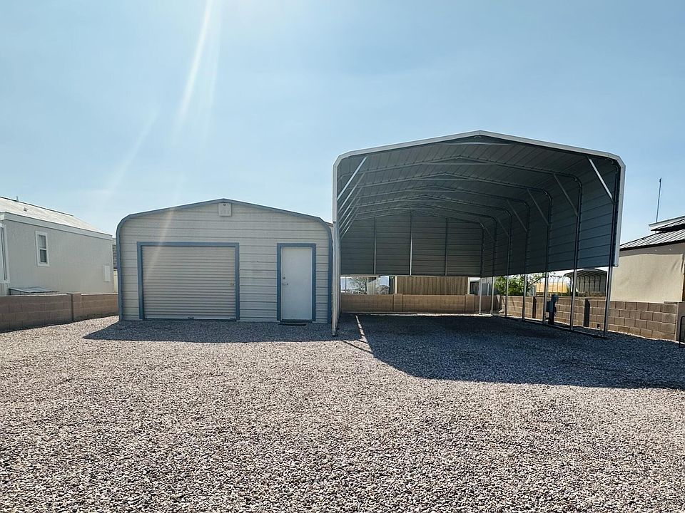 WOW! MOTIVATED SELLER - SELLER WILL CONSIDER ALL OFFERS! Deeded RV lot located in Arizona Sun Village a private, secure, gated community. This lot is surrounded by brick walls with 2 sliding, wrought iron RV gates and a walk-through gate. There are (2) RV Hookups and a 30' x 20'' Kool cover for seasonal or all year around enjoyment. The Garage is 20' x 22' (440 sf) complete with a workbench, 3/4 bath, washer/dryer hookups, electric water heater, ample storage shelves, a loft and many extras included. The electricity has been upgraded to 220amp. Need more space?